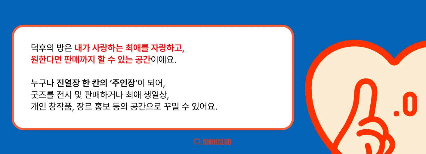 아래에서 덕후의 방 체크인 예정인 주인장들의 물건을 미리 만나보세요!